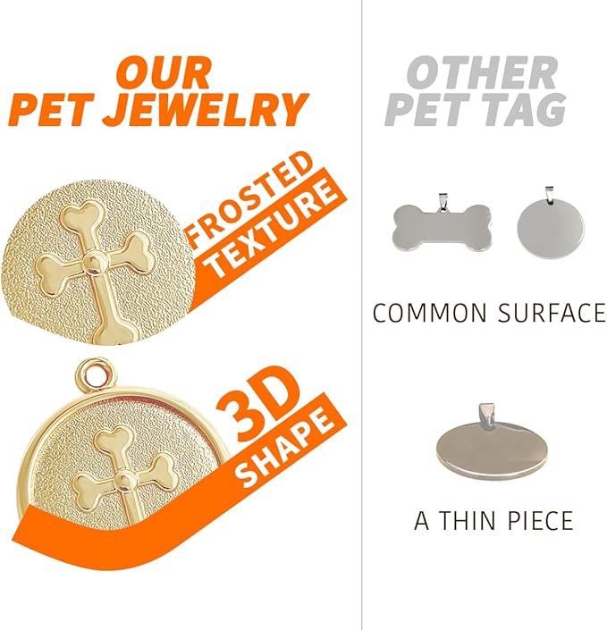 - Our dog tag is made of high-quality stainless steel, which is durable and can withstand the elements, ensuring that your dog's identification is always visible. The customizable text is laser engraved, which means it will never fade or wear off, giving you peace of mind that your dog will always be identifiable.