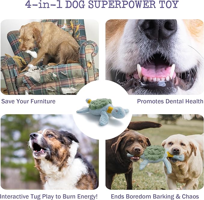 - 【Indestructible Turtle Dog Toy】– Crafted with ultra-tough triple-layer fabric and reinforced seams, this turtle-shaped toy withstands even the most aggressive chewing. Unlike flimsy stuffed dog toys, its rugged design prevents tearing, making it a truly indestructible dog toy that lasts weeks, not minutes