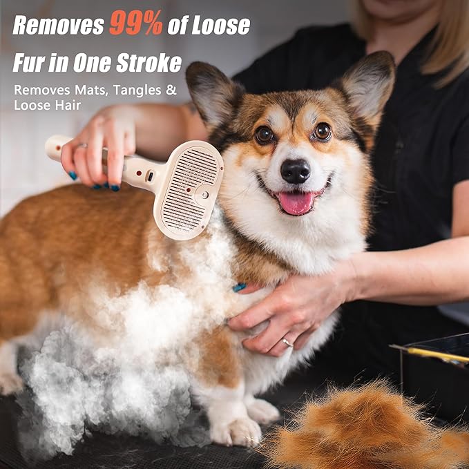 - 【Self Clean pet brush with release button】: There is a release button on the back of the cat brush with steam, after brushing off the cat's hair with the pet steam brush, simply press the button on the back to easily remove the hair from the cat brush.