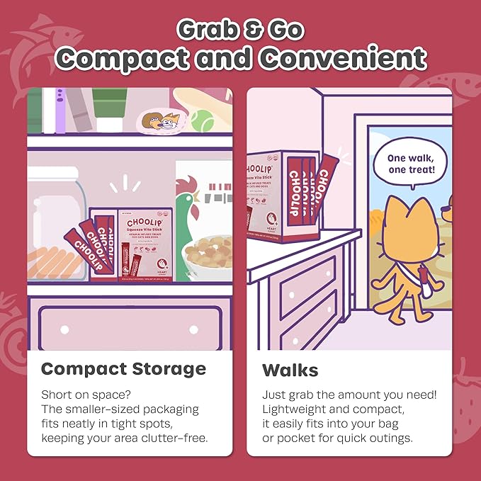 Choolip Squeeze Vita Stick Lickable Cat Treats & Dog Puree – 49-Count Heart Support Tubes, Creamy Grain-Free High-Protein Puree with Omega 3, Taurine, L-Carnitine & CoQ10 for Healthy Heart & Energy