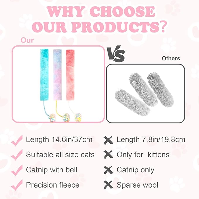 - 【Soft material】The catnip toys pillow with bell is made of soft material and selected cotton. These cat toys are enough for your cat friends to snuggle and chew. The length of the product is 37cm and the width is 16cm. The length of this product is also long enough for grasping, allowing you to interact with your cat friends.