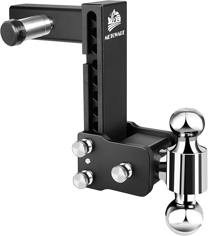 METOWARE Adjustable Trailer Hitches Fits 2-Inch Receiver - Adjustable Ball Mount with 8-Inch Drop/Rise (12,500 LBS GTW) - Dual Ball (2'' x 2-5/16'') and Anti-Theft Stainless Steel Trailer Lock