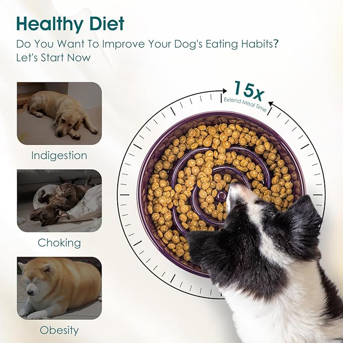- 15X Slower Eating: vancasso slow feeder dog bowls clever design with ridges and a maze pattern slows down eating by 15X, turning meals into a fun, engaging challenge. Helps prevent indigestion, choking, and obesity while keeping your dog mentally stimulated. A smarter, healthier way to eat!