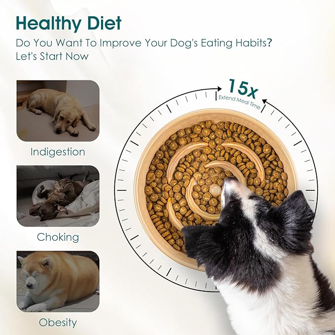 - 15X Slower Eating: vancasso slow feeder dog bowls clever design with ridges and a maze pattern slows down eating by 15X, turning meals into a fun, engaging challenge. Helps prevent indigestion, choking, and obesity while keeping your dog mentally stimulated. A smarter, healthier way to eat!