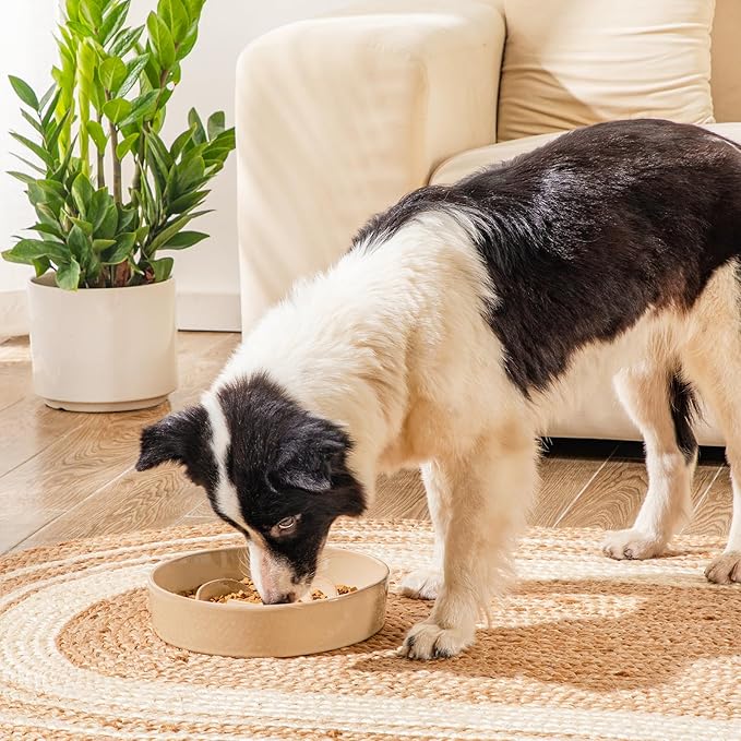 - Healthy Ceramic Slow Feeder: Made from 100% non-toxic ceramic, this bowl is a safer alternative to plastic. Its smooth, scratch-resistant, and stain-resistant surface resists dirt buildup and prevents black chin stains—keeping your dog's face cleaner and healthier. Plus, ceramic's non-porous material ensures easy cleaning with no lingering odors or residue.