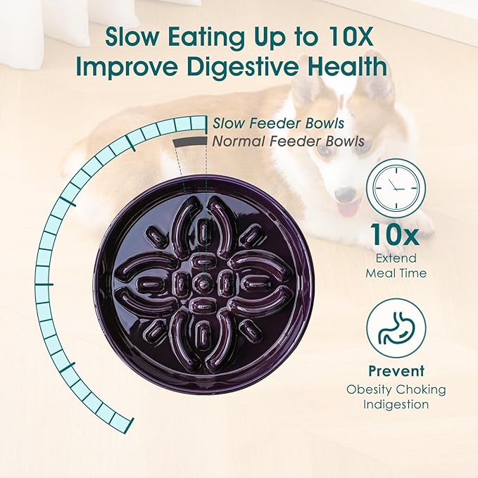 - 【Elegant & Functional Design】 This beautifully crafted ceramic dog bowl features a stunning floral pattern with a raised flower centerpiece—not just for aesthetics, but to slow down your dog’s eating by up to 10x compared to regular bowls!