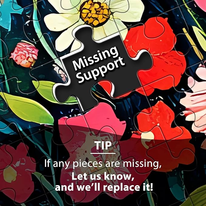 - MISSING PIECE SUPPORT: If a piece is missing, contact us and we’ll send a replacement with the same image. We’re here to help and ensure your puzzle experience is complete.
