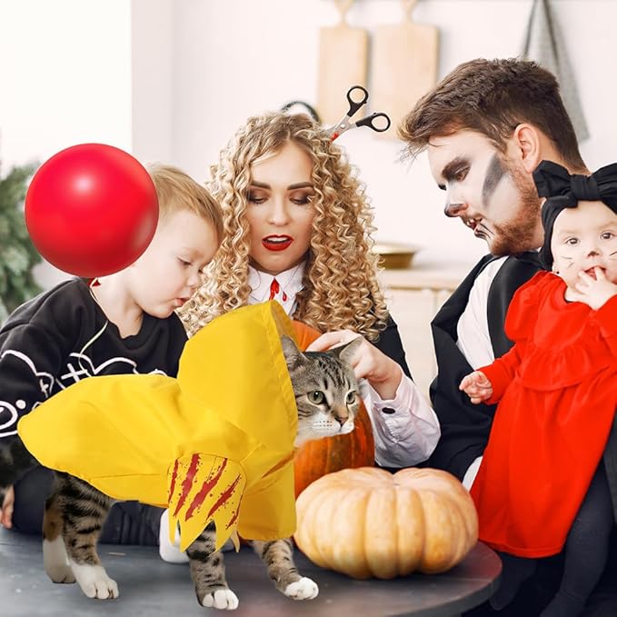 - 【Creative Cape】You will receive a classic yellow Halloween pet raincoat and a red balloon, making your pet look even more mysterious.It will make your pet the star of the party and is the perfect choice for you to create a mysterious atmosphere for Halloween.