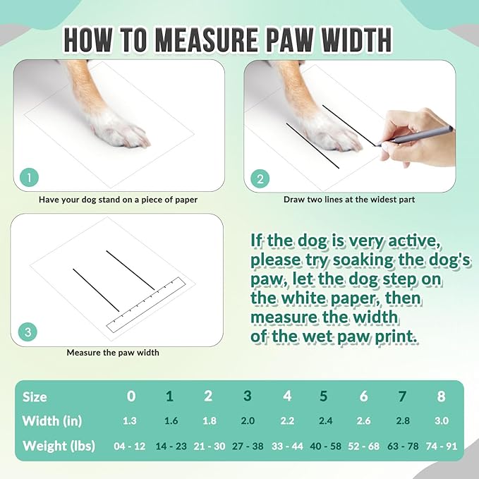 - Multiple size options --- Our dog shoes come in 9 sizes to choose from, suitable for small, medium, and large dogs. Our size is based on the inner diameter of the shoes, please be sure to measure the width of your dog's paws carefully and refer to the size chart to select the appropriate size to ensure the utmost wearing comfort for your dog.