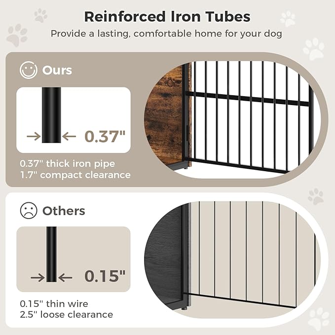 - 【Sturdy and Chew-Resistant】This 48'' dog crate furniture is made of premium particle board and iron pipe, which is stronger and more chewy; It will accompany your dog throughout the growing stages; It's an ideal gift for your dog