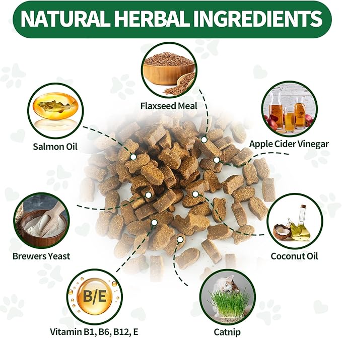 - Natural Support for Flea & Tick Wellness: Looking for a gentle, plant-based alternative to traditional flea collars and sprays? Cudory's natural cat chews are crafted to help maintain your cat’s comfort and inner balance. Easy to incorporate into daily routines, they provide year-round wellness support without the mess or stress.