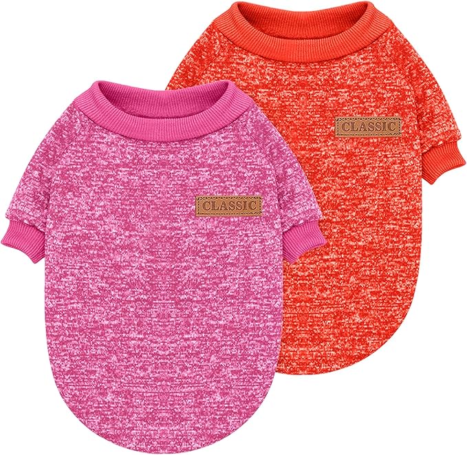 2 Pieces Pet Dog Classic Knitwear Sweater, Fleece Coat for Small,Medium Dogs,Warm Pet Dog Cat Clothes,Soft Puppy Customes for Chihuahua Yorkshire Tzu (Rose Red Orange,XXS)