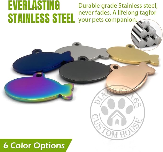 - There are many shape, pattern, font and color options. Customized info is clear to read with the permanent laser engraving. Choose the one you like and personalize it.