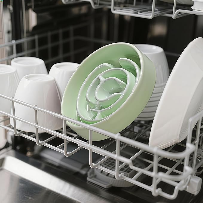 Ceramic Slow Feeder Dog Bowls with Anti-Slip, Slow Feeder & Non-Slip Design, Boredom and Anxiety Reducer, Suitable for All Breed Dogs and Cat (Ceramic-Green)