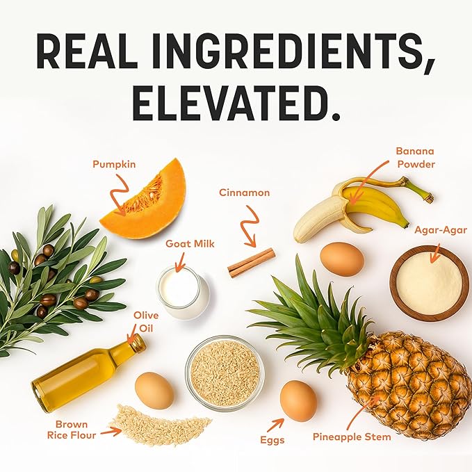 - MADE WITHOUT: No bleach. No synthetics. No foul odor. Each No-Hide starts with simple ingredients: brown rice flour, agar-agar, eggs, olive oil, banana powder, & pineapple stem. After adding festive natural flavor, they're baked to perfection