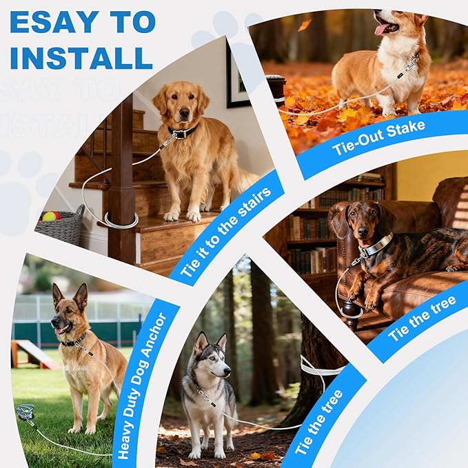 - 【✅Ease To Use】Tie to a tree or stake, or tie the dog chain leash to your waist for walking and playing with your dogs.Worry-Free Quality Assurance: If you encounter any quality problems, please feel free to contact us, we will do our best to eliminate the trouble for you.