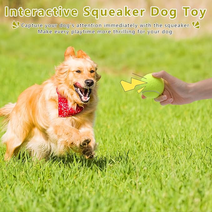 - 【DOG SQUEAKY BALLS】Our tennis balls have a built-in squeaker. When your pet bites or squeezes a ball, it emits a cute sound that sparks their interest. These squeaky tennis balls not only keep your pet from feeling bored but also strengthen the bond between you and your furry friend.