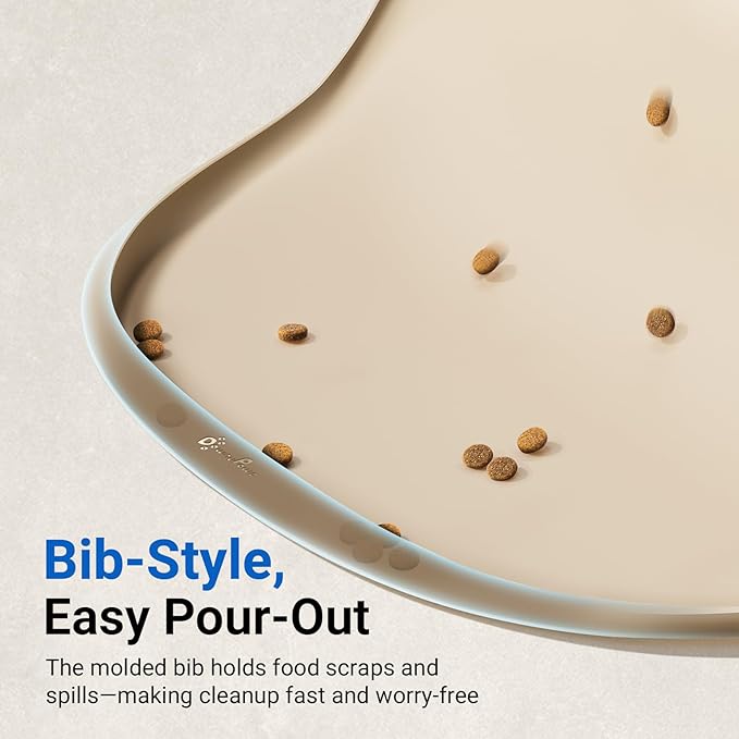 - Unique FurBib Design: Our thoughtful FurBib design helps guide water and crumbs back onto the pet feeding mat when lifted. Less scatter, less cleanup. The small pocket (10mm deep) suits most cat food sizes, while the medium pocket (16mm deep) easily contains common dog kibble