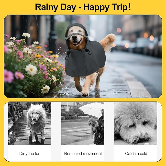 • Extended Back Hem & Lightweight Fabric for Full Coverage: Extra-long tail coverage protects your dog’s belly and legs from splashes, while the ultra-light fabric (0.3lbs) ensures comfort for all-day wear. Great for camping trips or rainy neighborhood strolls with large breeds like Golden Retrievers
