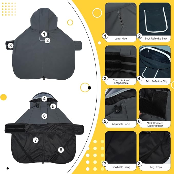 • No-Sleeves Design & Secure Leg Straps for Hassle-Free Wear: Slip-on style with no restrictive sleeves makes dressing effortless, while adjustable leg straps keep the raincoat in place even during energetic play. Ideal for small dogs like Chihuahuas or Poodles who dislike bulky clothing