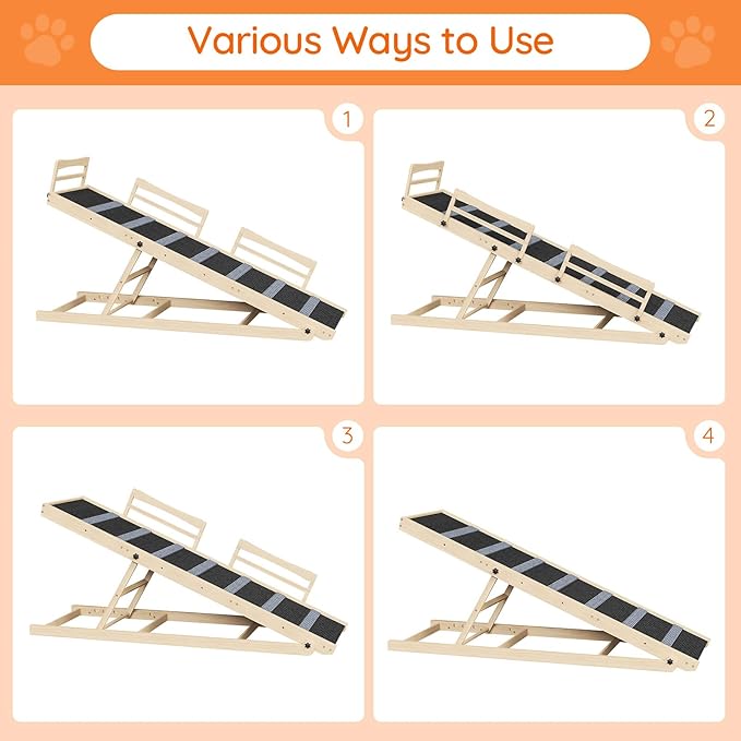 - Enhanced Safety with Non-Slip Surface & Guardrails: with anti-slip carpet for secure footing and detachable guardrails on either side, this dog ramp is ideal for puppies, senior dogs, or pets with limited mobility, helping reduce the risk of slips and falls