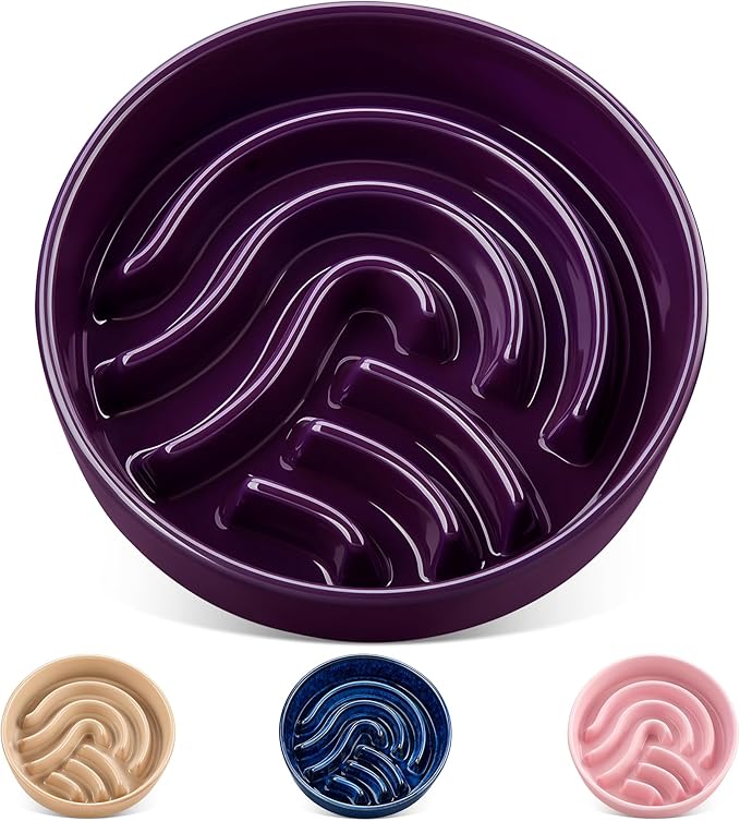 - 🐾【ENCOURAGES HEALTHY EATING HABITS】Our ceramic slow feeder dog bowl features a unique maze design that forces your pet to eat slower. This helps prevent bloating, improve digestion, and reduce the risk of choking and vomiting, promoting better overall health for your fast eater.