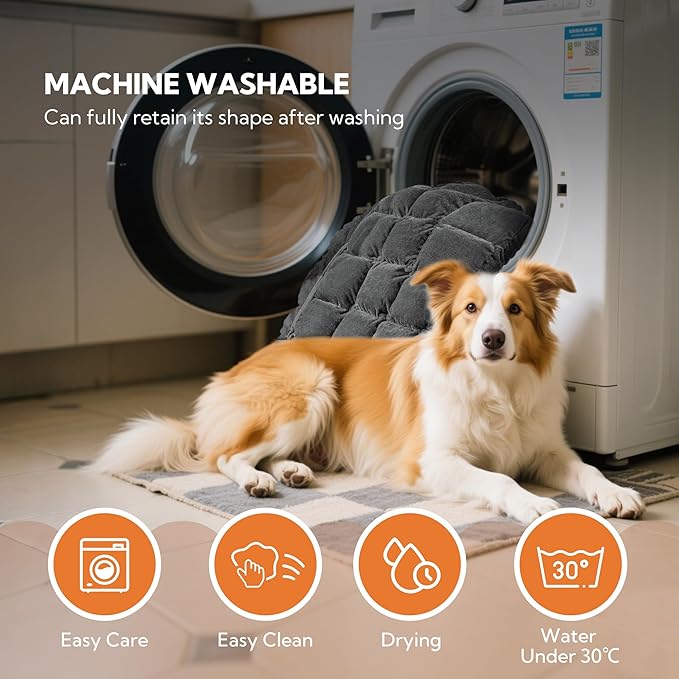 - 【Durable and Easy to Clean】We understand that pet products need to withstand daily wear and tear. That's why this fuzzy dog bed is made of durable materials that can endure your pet's scratching, chewing, and all kinds of daily abrasion. Moreover, it's extremely easy to clean. When the mat gets dirty, simply wipe it or throw it in the washing machine, and it will quickly return to a clean and tidy state, saving you time and effort.