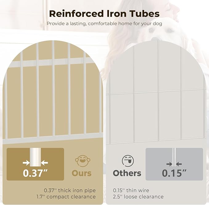 - 【Spacious and Tall Design】Worried your dog can’t stand comfortably inside? This xxl indoor dog cage offers tall height and ample room, specially designed for large breeds; 360° visibility helps reduce anxiety and keeps your dog at ease