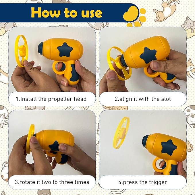- Durable Replaceable Discs: Each propeller comes with 2 extra discs(12 total) to extend playtime. Easy to swap when worn out—no need to replace the entire toy.