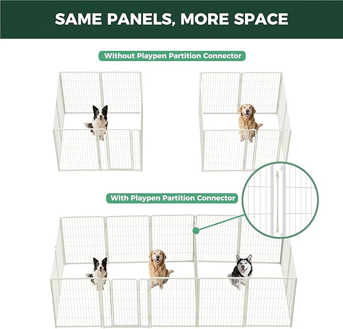 - Ideal Partition Solution for Dog Playpen: Designed for dog playpens, this connector links up to three panels, allowing flexible customization to expand activity zones and ensure a safe, organized space.