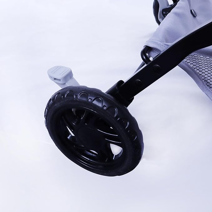 - SMOOTH GLIDE AND EASY CONTROL: Easy maneuverability with two 360° swivel wheels and two rear wheels with brakes for safe control. Unique shock-absorbing design minimizes bumps and abrasion-resistant construction ensures long service life, making every stroll a smooth and enjoyable experience.