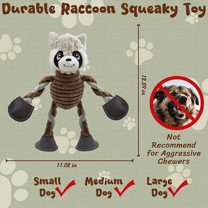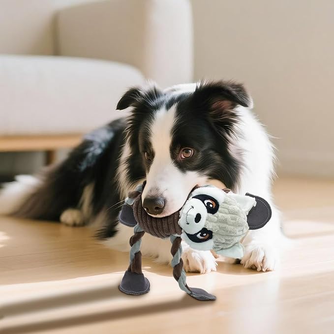 Squeaky Dog Toys, Tug of War Plush Toys with 5 Squeakers, Stuffed Dog Toys to Keep Them Busy, Chew Toys with Crinkle Paper for Small & Large Breeds (Raccoon)