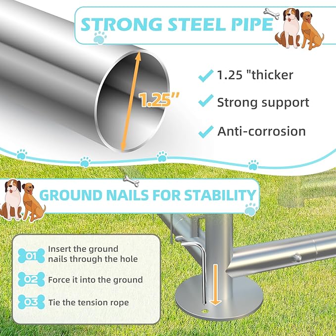 - SPACIOUS AND SECURE OUTDOOR SPACE: Give your dog room to run and relax! This large kennel provides a generous play area that keeps your pet active while preventing feelings of confinement. Ground stakes can be inserted through the base for extra stability—ideal for windy conditions or active dogs