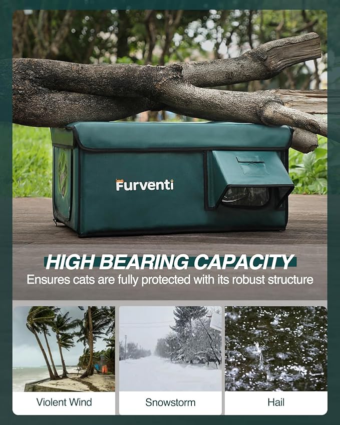 - šš®šššØšØš« ššš šš®š¬š šššÆš-The outdoor cat house with eaves has greatly improved the overall waterproof effect, and rain from any direction can be kept out of the door.The two exits provide multiple escape routes from predators to prevent feral cat from being trapped.Dampproof base ensures their dryness even on muddy ground.The frame structure is not only strong but also has higher weight capacity.