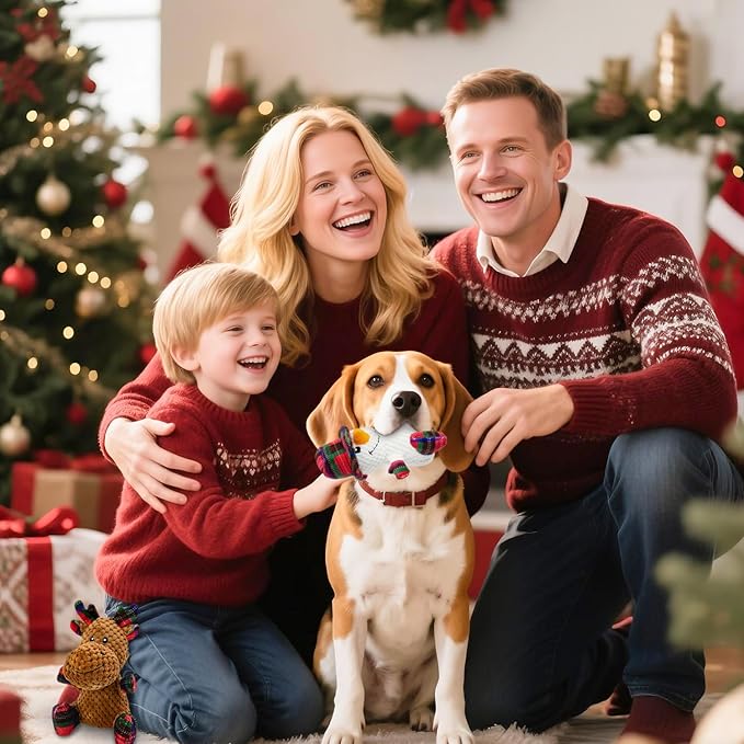 - Christmas Dog Toys: This plush toy isn't just your pup's playmate - it's a bonding experience! Designed with festive cheer, it features an exciting dual-stimulation system (squeaker + crinkle paper) that instantly captures your dog's attention and satisfies their natural curiosity. Why Pet Parents Love It: - Promotes healthy development - mentally stimulating & physically engaging - Encourages positive interaction between you and your furry friend - The ultimate Christmas surprise - watch their tail wag with joy!