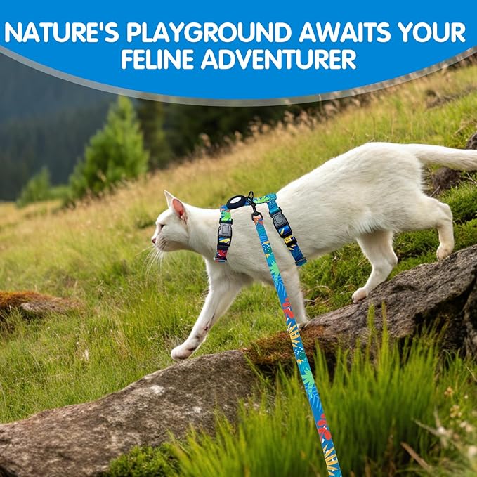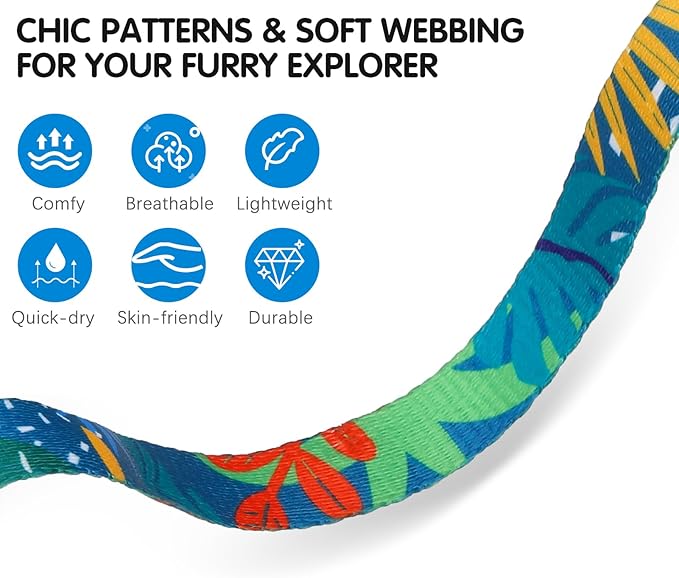 - SOFT,LIGHTWEIGHT MATERIAL: Crafted from high-quality polyester webbing, this kitten harness and leash set is lightweight, breathable, and skin-friendly—ideal for daily wear, outdoor strolls, travel, or vet visits. The vibrant tropical green leaf pattern brings a fresh, eye-catching style that instantly makes your kitten stand out