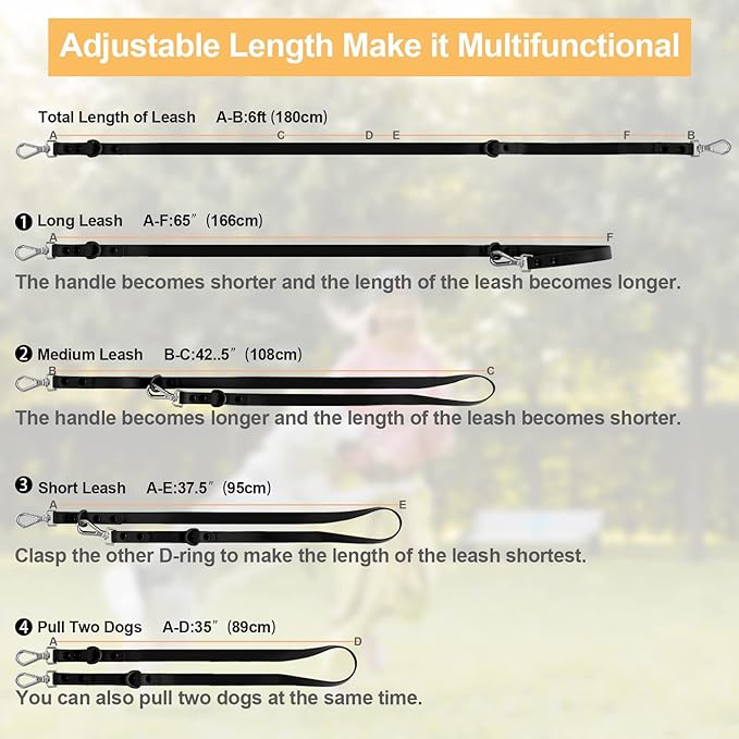 Wisedog Waterproof Dog Leash – 5ft/6ft Adjustable with 2 Hooks & Traffic Handle, Easy to Clean Double Clip Leash for Small, Medium, Large Dogs (Black M)