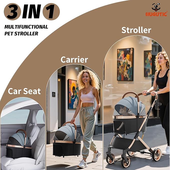- REIMAGINED PORTABILITY - Th conveisniently detachable carrier not only fits perfectly on a car seat but also transforms effortlessly into an elegant, standalone pet stroller for small pets. Thanks to its one-click folding mechanism and lightweight design, storing and transporting it has become incredibly easy.