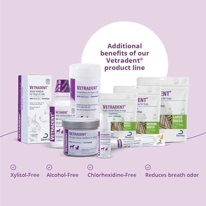 - Vetradent Veggie Dog Dental Chews promotes clean teeth and fresh breath while scientifically formulated to help reduce plaque and tartar