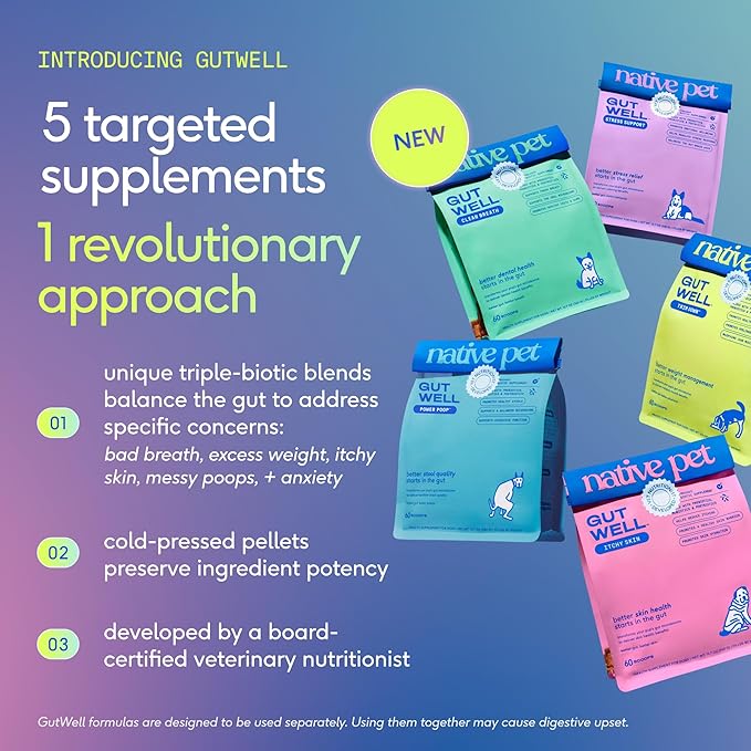 Native Pet GutWell Clean Breath - Dog Breath Freshener & Dog Dental Powder - Teeth Cleaning to Reduce Plaque & Tartar - Promotes Fresh Breath with Targeted Triple-biotic Dental Care Blend - 60 Scoops