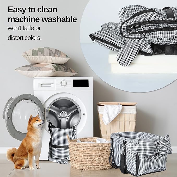 - 【Easy to clean and disassemble】This is a detachable dog center console.We have all adopted a zipper design, so you can take out the internal sponge and put them (except for the hook straps) into the washing machine for cleaning.