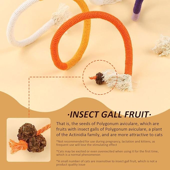 - Natural and Safe Materials: Strong cotton rope and natural silver rattan balls are used, without chemical additives, metal parts or artificial flavors. They are suitable for kittens and adult cats, and even cats who like to chew violently are very safe