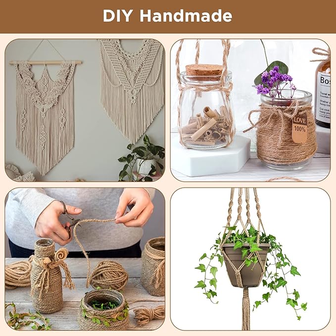 - 【Natural Premium Jute Rope】: Our premium sisal rope is made of pure natural jute, lightweight and soft, no harmful substances, cat-friendly jute ropes; please note that the pure natural twine string rope will have a little smell, you can put it in a dry place for a few days before use