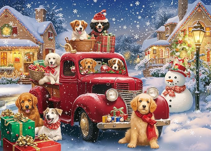 Santa Paws Jigsaw Puzzles 1000 Pieces for Adults -Challenging Christmas Puppy Blessings Art, Premium Matte Finish, 27.56 x 19.68 Inches, Perfect for Game Nights