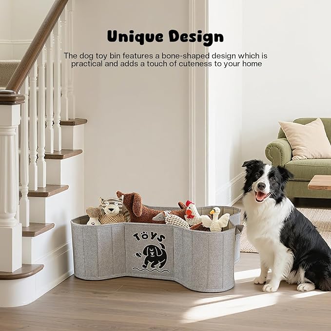 - The dog toy storage basket features a bone-shaped design, which is practical and adds a touch of cuteness to your home. It's perfect for keeping all your dog's toys neatly organized and easily accessible