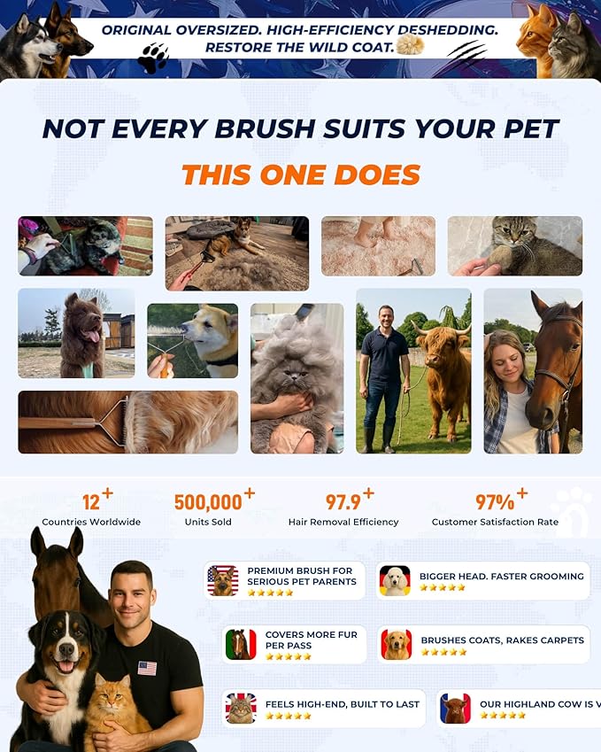 - âď¸ăEffortless Mat and Tangle RemovalăEasily remove stubborn mats and tangles with KIZO ESLOď¸ professional-grade extra larger dog brush for deshedding. Designed for both cats and dogs of medium or long coat length, like German Shepherd, Husky, Bernese Mountain Dog, this professional grooming tool ensures a smooth, pain-free grooming experience, leaving your pet's coat healthy and neat.