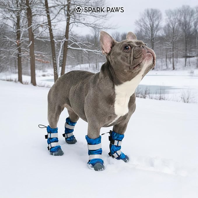 Spark Paws Dog Shoes, Waterproof Dog Boots for Medium to Large Dogs, Non Slip, Breathable Dog Booties and Paw Protectors - 4PCS Doggie Hiking Boots with Reflective Straps, Blue Camo, Size 6