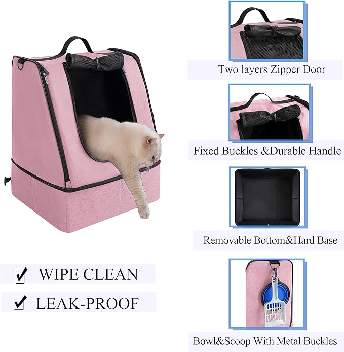 apollo walker Portable Cat Travel Litter Box with Zipped Waterproof Bag,No Collapse with Hard Base Insert at Bottom, No Leakage, No Smell, Easy to Carry, Easy to Use in Hotels