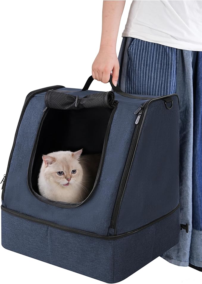 apollo walker Portable Cat Travel Litter Box with Zipped Waterproof Bag,No Collapse with Hard Base Insert at Bottom, No Leakage, No Smell, Easy to Carry, Easy to Use in Hotels