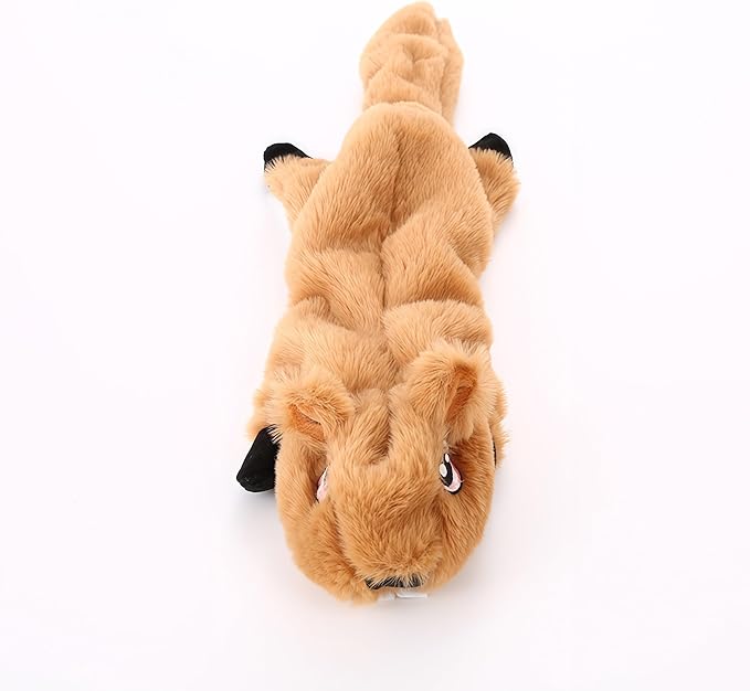 Squeaky Plush Squirrel Dog Toys, No-Stuffing Design, Set of 2, Blue and Yellow, for Small & Medium Dogs